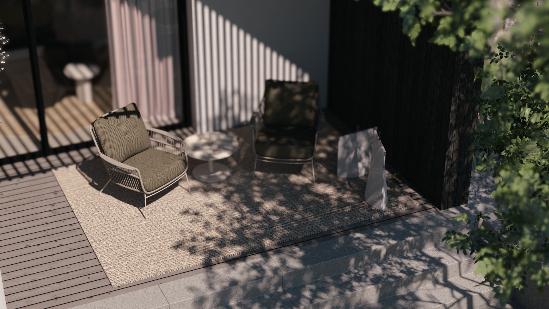 A stylish lodge for 4-6 guests, featuring two-level terraces for outdoor living and serene views of nature.